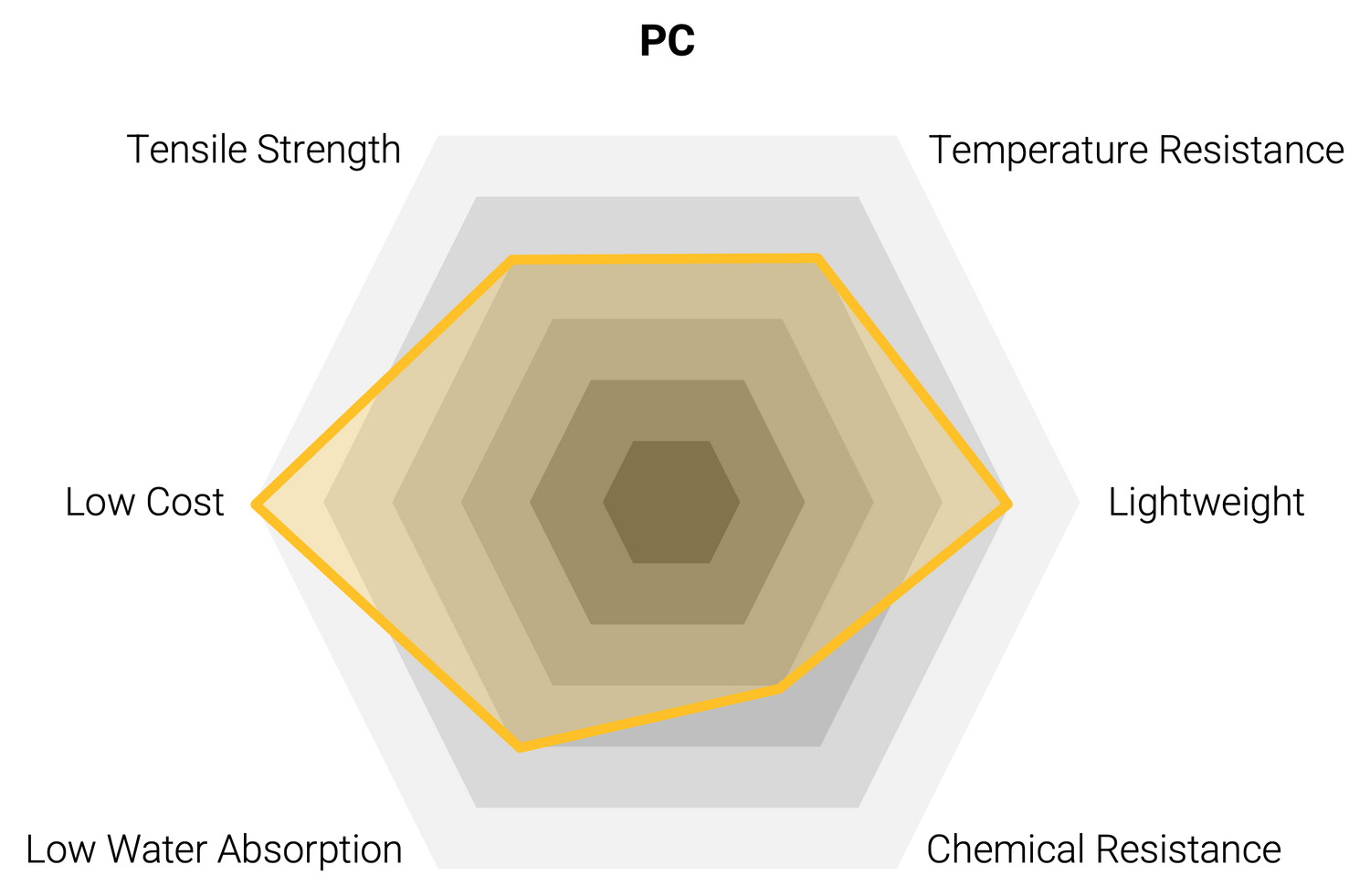 Follow the link below to view our PC data sheet. This includes properties such as mechanical, electrical, thermal and chemical resistance.