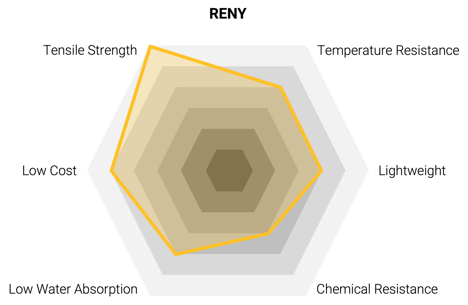 Follow the link below to view our RENY data sheet. This includes properties such as mechanical, electrical, thermal and chemical resistance.