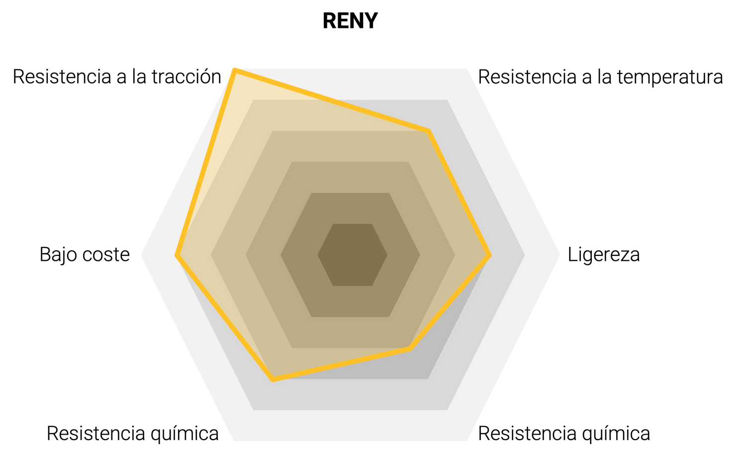 Siga el enlace siguiente para consultar nuestra hoja de datos RENY . Incluye propiedades como la resistencia mecánica, eléctrica, térmica y química.
