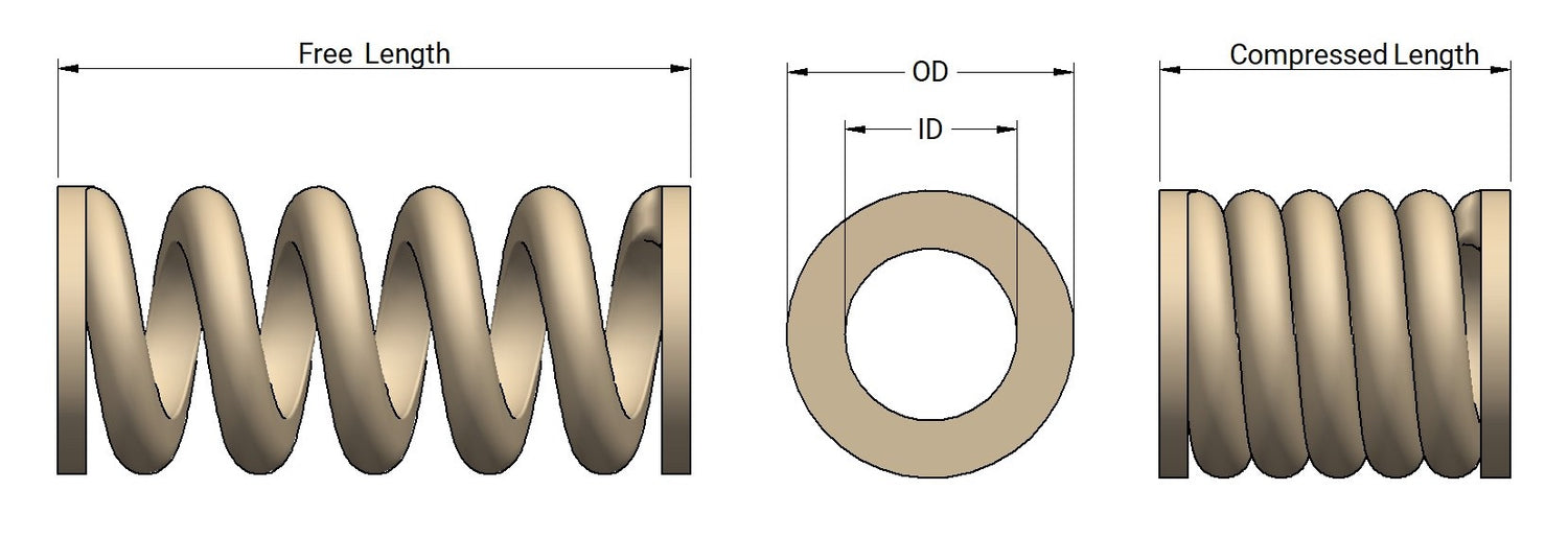 Las dimensiones de Muelles de compresión PEEK en todos los tamaños disponibles se muestran según el dibujo del producto anterior.