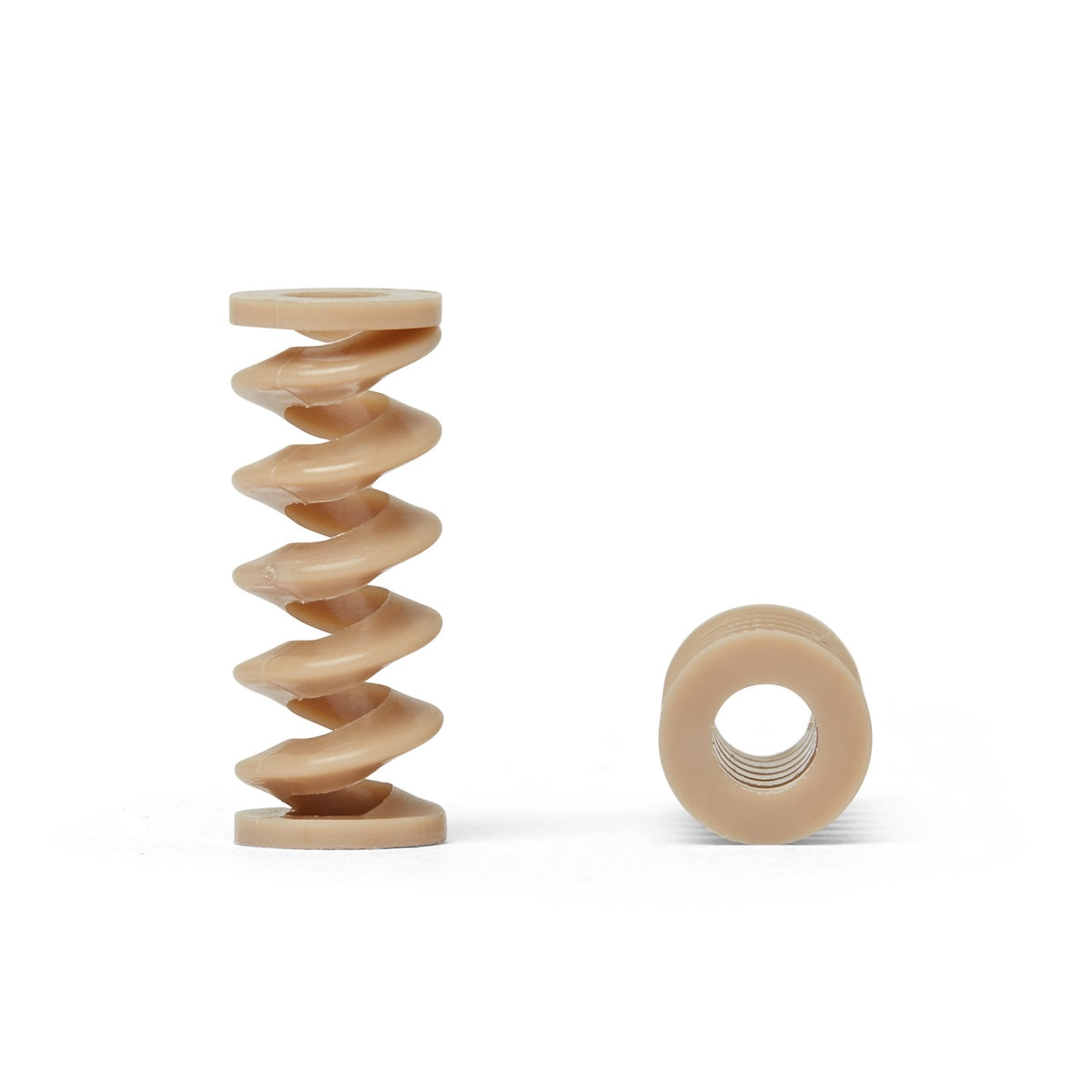 Los muelles PEEK también tienen una excelente resistencia a la fatiga, lo que significa que pueden soportar repetidos ciclos de tensión sin fallar. Esto los convierte en una opción fiable para aplicaciones en las que los muelles están sometidos a cargas cíclicas repetidas, como en dispositivos médicos o maquinaria de alto rendimiento.