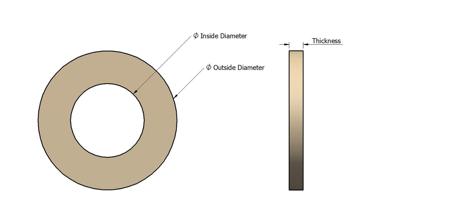 Las dimensiones de Arandelas planas PEEK en todos los tamaños disponibles se muestran según el dibujo del producto anterior.