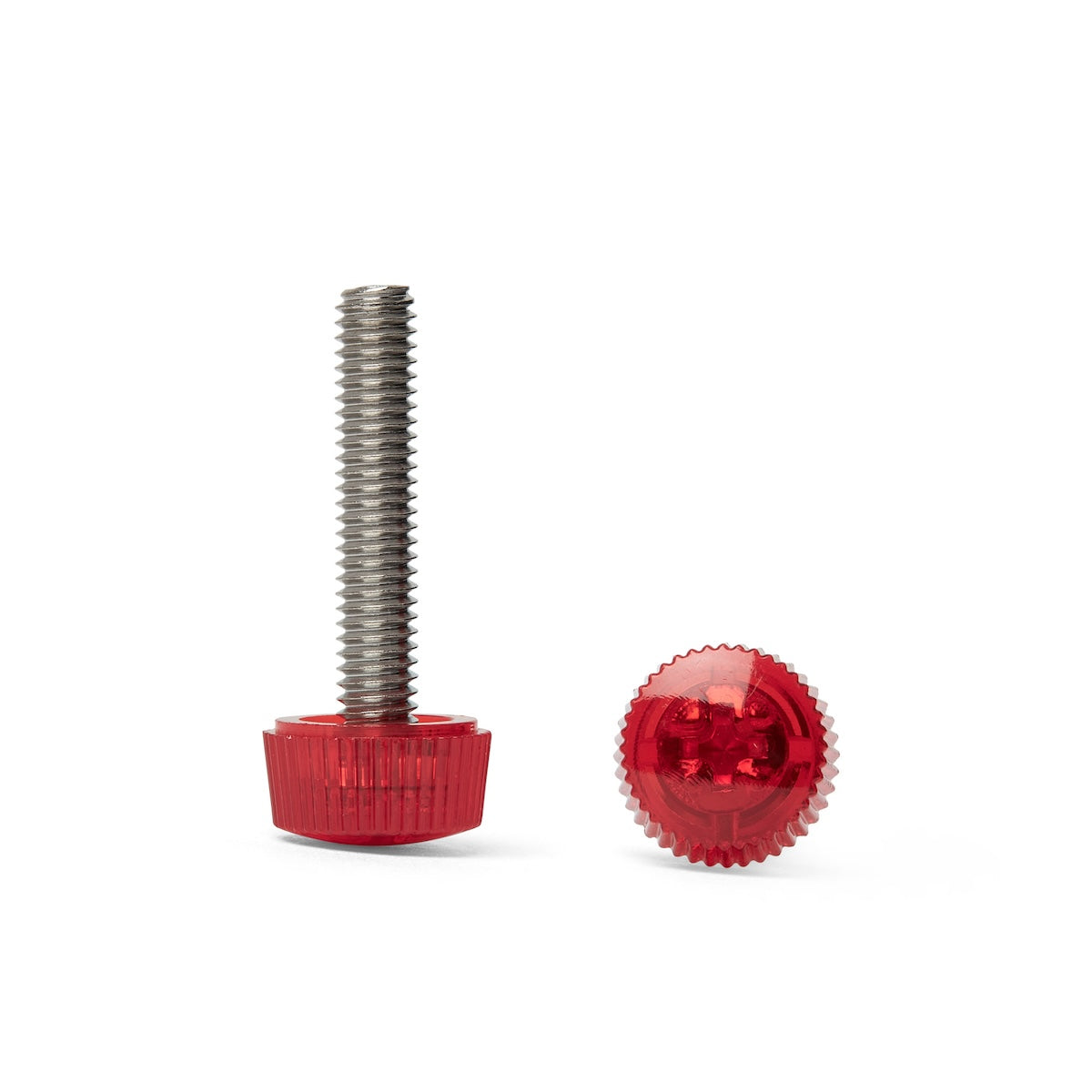 Los tornillos de pulgar de policarbonato (PC) con rosca de acero inoxidable están disponibles en los tamaños métricos M3 y M4.